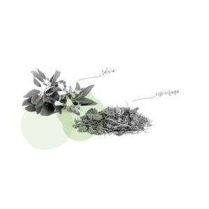 Nahrungsergänzungsmittel auf Basis von Vitaminen, Mineralstoffen und Pflanzenextrakten von Traubensilberkerze (Cimicifuga) und Salbei, Pflanzen, die zur Linderung typischer Beschwerden der Menopause geeignet sind. GLUTENFREI. NATÜRLICH LAKTOSEFREI. FÜR VEGANER GEEIGNET.